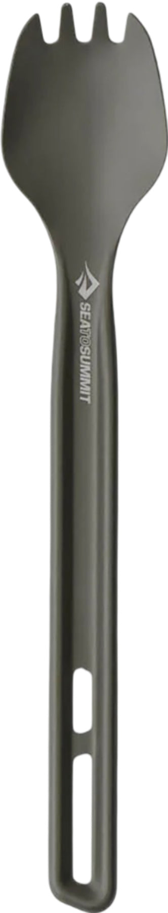 The Long Spork is a perennial best-selling utensil. It has a handle with a unique profile for strength that permits individual utensils to stack together. Food contact surfaces have a semi-polished finish for more enjoyable dining. Made of hard-anodized aircraft-grade aluminum, the Long Spork is built to go the distance.
