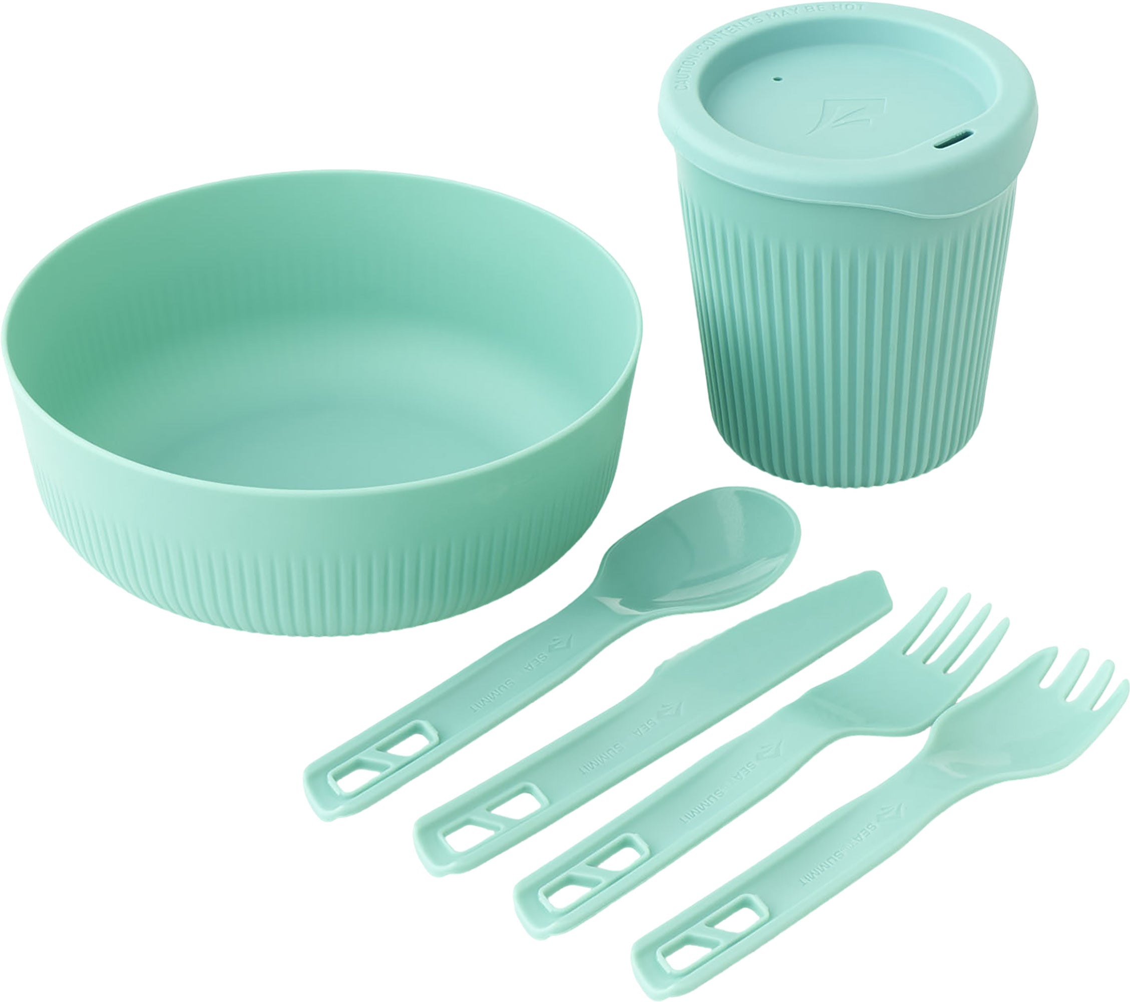 Perfect for 1 person, this 6 piece BPA-free Passage Dinnerware set is lightweight, durable and easy to clean. Featuring our Cool Grip fins that reduce surface temperatures and heat transfer, mealtimes are safe and seamless. Passage cutlery can be clipped together to create a long-handled spoon, fork or knife for space-saving and efficiency.