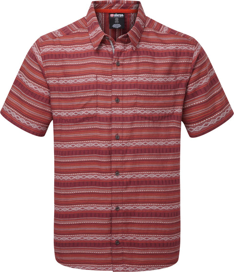 Features • Lightweight woven jacquard pattern inspired by local woven textiles made in Nepal is exclusive to Sherpa • Organic cotton • Seams are placed away from shoulder tops to avoid chafing under pack straps • Center back length: 30" • Fabric: 60% organic cotton / 40% recycled polyester