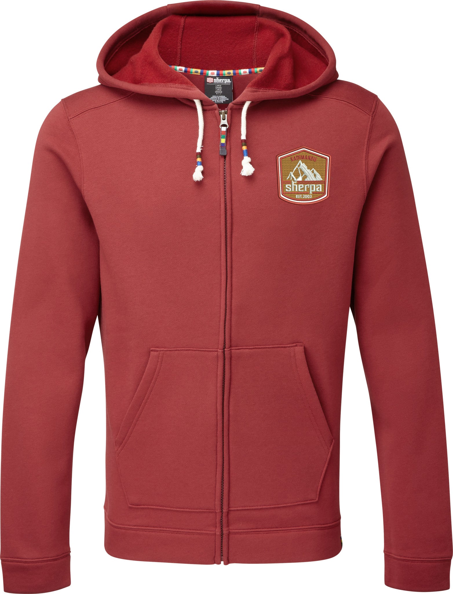 Features : • Nepal inspired trims • Embroidered patch inspired by old climbing expeditions on front chest • Organic cotton blend fabric is soft and durable • Seams are placed away from shoulder tops to avoid chafing under pack straps • Prayer flag reinforcement tape at neck provides clean finish, comfort and prevents the neckline from stretching out • Includes media port in kangaroo pocket • Center back length: 28"