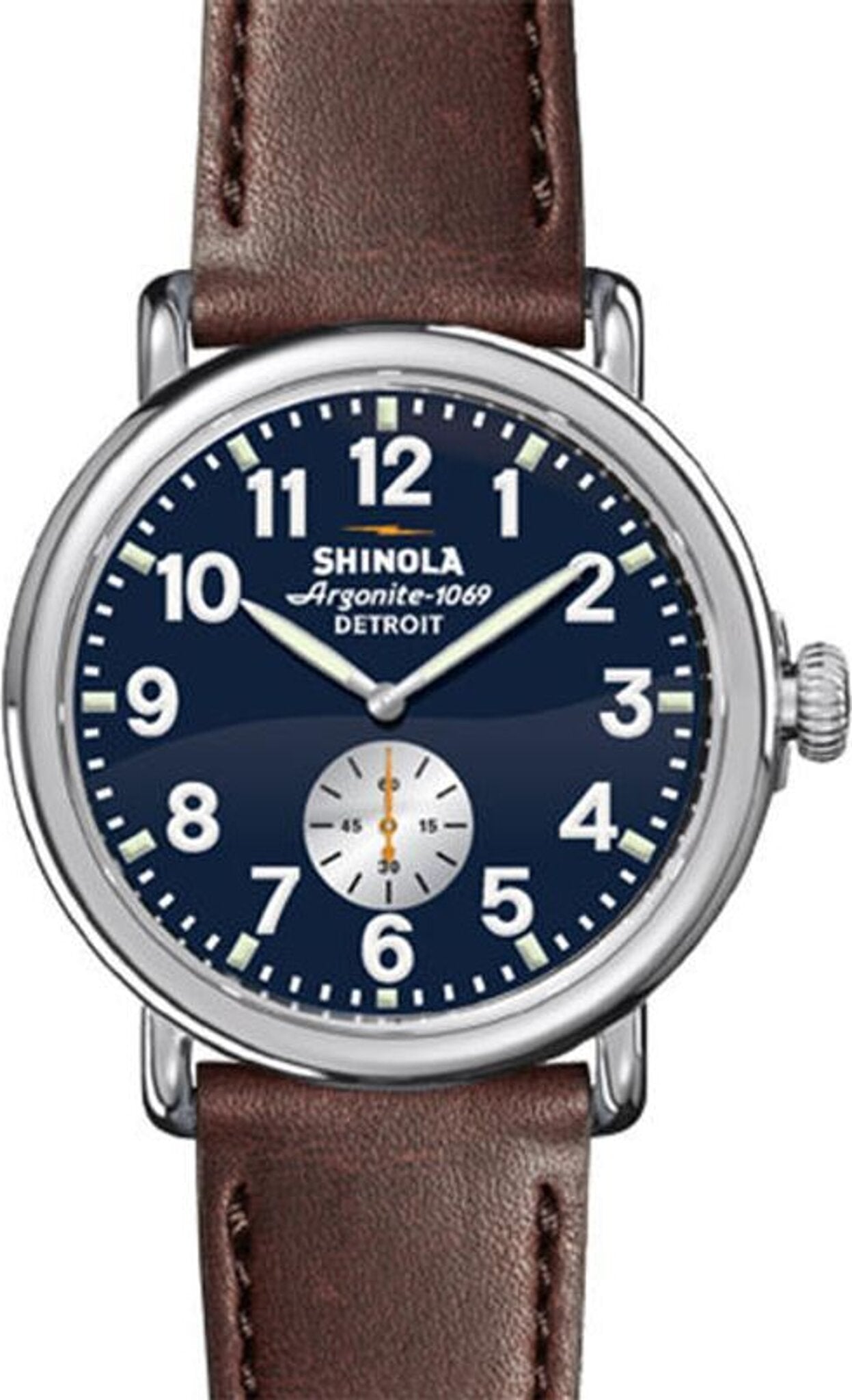 Built to last and named accordingly, this 41mm Runwell is outfitted with a timeless stainless steel case and cattail leather strap that will look as classic in a decade as it does this very minute. White Arabic numerals and indices stand boldly against the midnight blue dial, while a silver sub dial punctuates the classic look. From the laser-etched case back to the etched lightning bolt on the buckle, every detail of our flagship timepiece has been engineered with an obsessive focus to ensure it can be worn any way-for years to come.