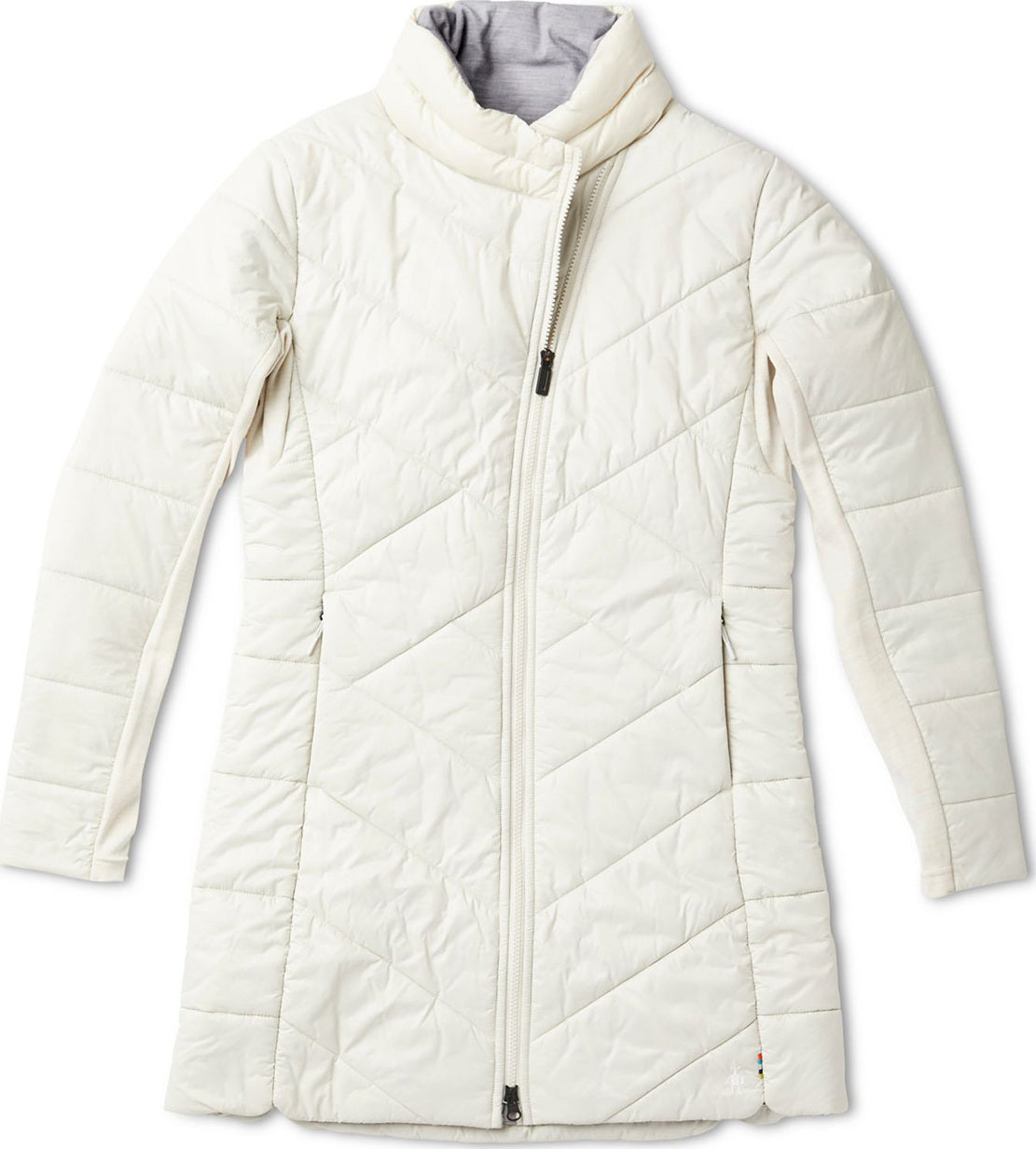The women’s SMARTLOFT 180 Parka is built to protect you from the cold. It’s padded with Smartloft 180 insulation, which is Smartwool’s warmest filling of 88% merino wool and 12% polyester, 50% of which is recycled merino. Stretchy knit panels along the underarms in a merino blend improve your freedom of movement. A next to skin merino lining enhances thermo-regulation, wicks moisture, and warms even when it’s wet. The exterior nylon shell is naturally wind-resistant and features a durable water-repellent finish. An asymmetrical 2-way front zipper allows for quick changes and lower body venting when unzipped from the bottom.
