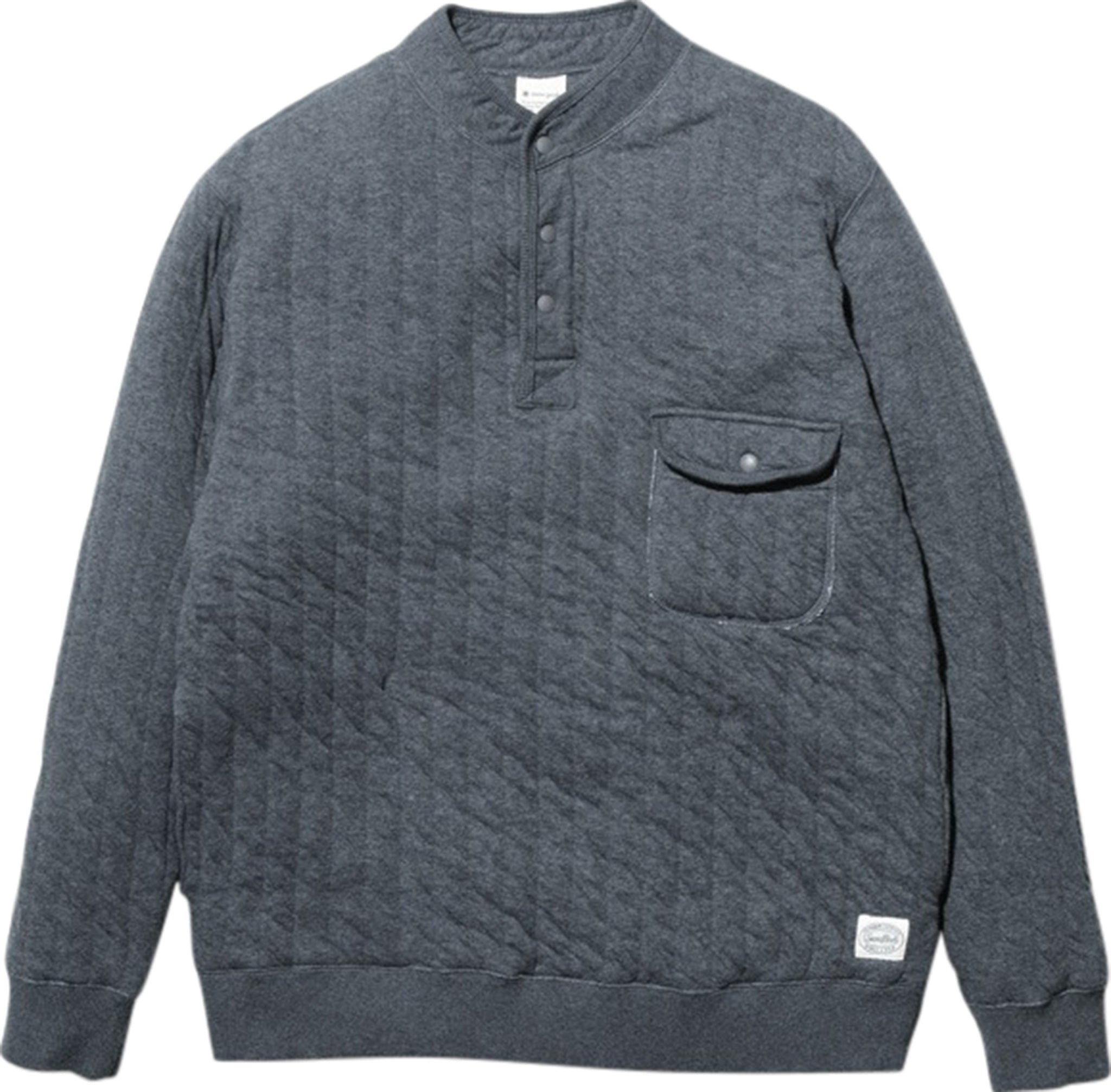 Stretchable "Natural Warm Stretch" series that is active in both home and camping scenes. As a relaxed midler, we aimed for a universal design that makes you want to wear it every day, and a stress-free fit. Focusing on Midler's temperature regulation and heat retention, we sandwiched batting between two pieces of cotton sheeting material. The outer material is made of cotton sheeting material, and cut and sewn stitching is used, and the excellent elasticity makes it easy to move. There are 5 types of items, including tops and bottoms. The lineup includes three colors: gray, orange, and ecru. We have prepared a wide range of sizes that can be worn in unisex. A long-sleeved pullover with a henley neck that is convenient for wearing alone or layered. The cuffs and hem are fitted with ribbed seams for a neat look. The lovely round flap pocket is the point, and there is also a side pocket where you can put your hands in when it's cold. Layering items with a slightly taller neck creates a well-balanced look.