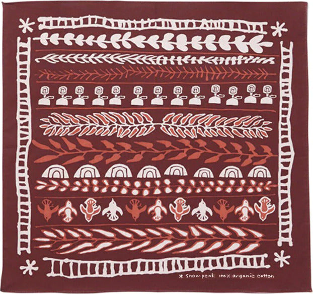 The Organic Nordic Bandana is hand-printed and made of 100% cotton. Each one features illustrations of birds, lanterns, and foliage.