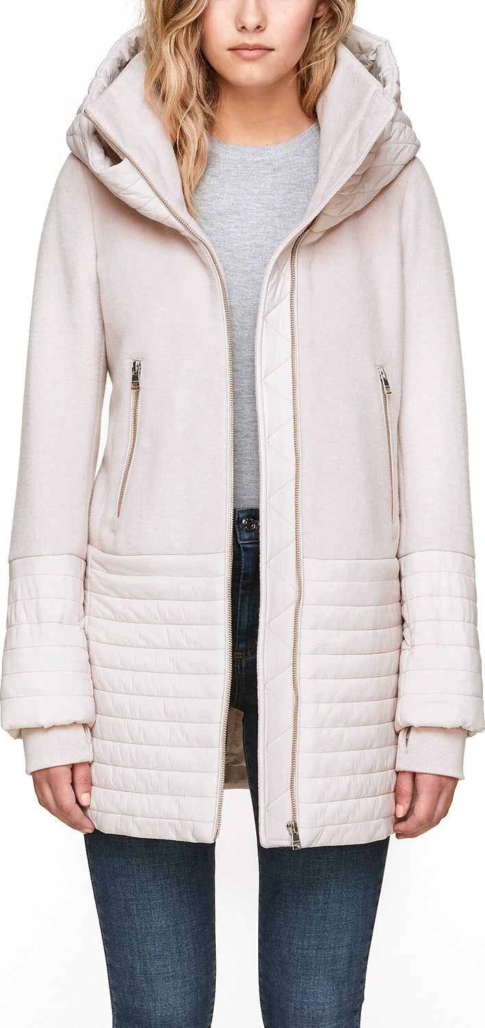 The women’s AVERY MIXED MEDIA COAT is a lightweight polyester fiber filled jacket in a unique wool and puffy blend. Its body is made from a warm and comfortable weave of wool, with high-polyester content for strength and viscose for an improved drape. The hood, high-collar, sleeves, and bottom are padded with warm polyester fill and wrapped in a sheen nylon fabric. The oversized insulated hood is designed to keep cold winds at bay. Practical rib storm cuffs with thumbholes ensure comfort and protection from early winter temperatures. The AVERY MIXED MEDIA comes has a semi-fitted silhouette providing coverage to the mid-thigh.