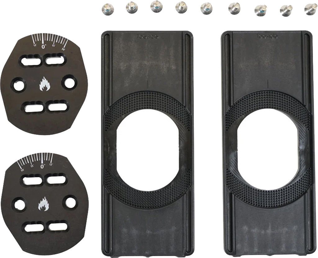 The Spark Solid Board Canted Pucks are perfect for trips where you are travelling with multiple boards or days when you may see a mix of resort riding and splitting. You may have a quiver of boards, but you only need one set of bindings. The added 3° canting helps reduce knee strain.