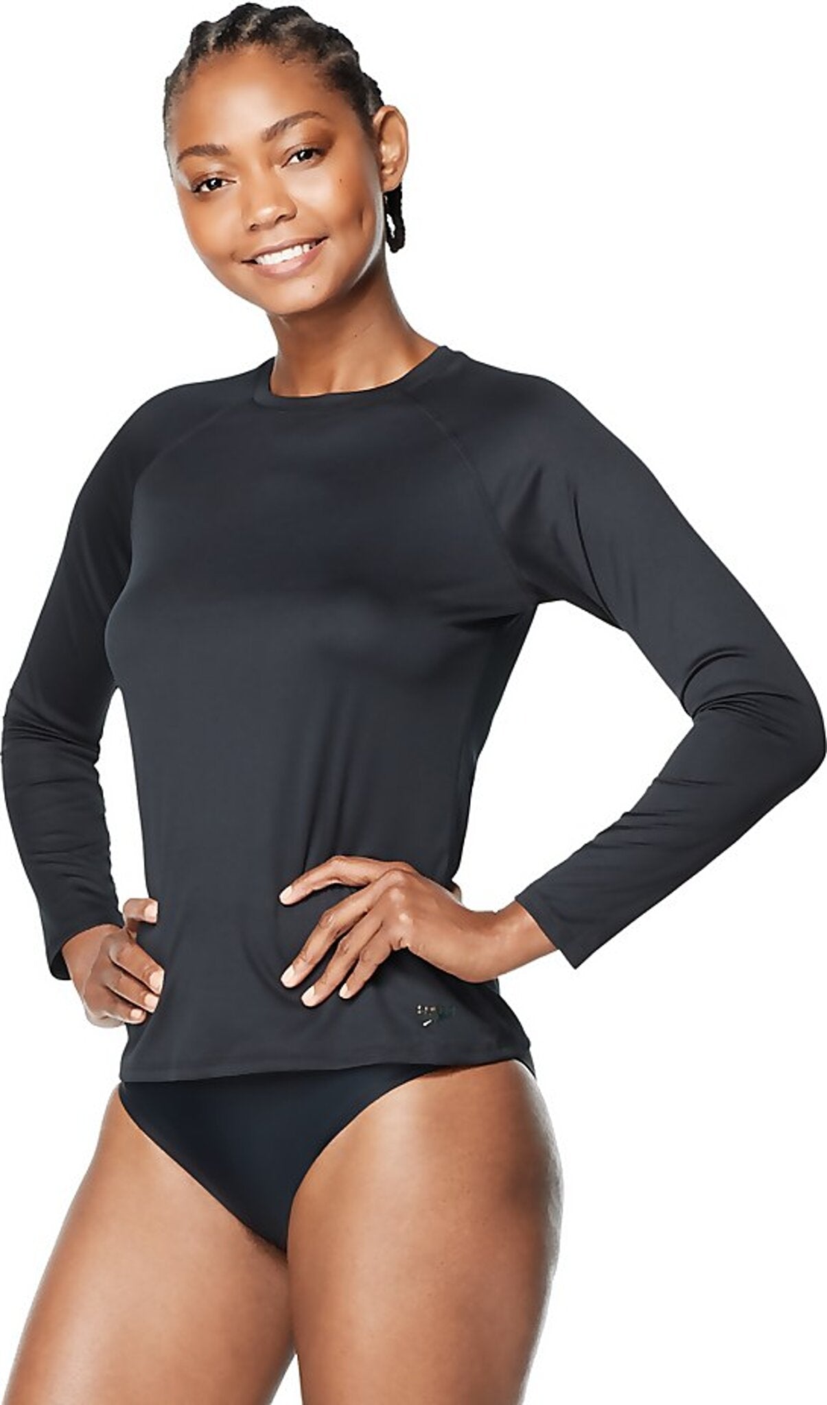 Cover up in and out of the water wearing this swim t-shirt. The long-sleeve style has a crewneck design and is made from quick-dry fabric finished with UPF 50+ sun protection.