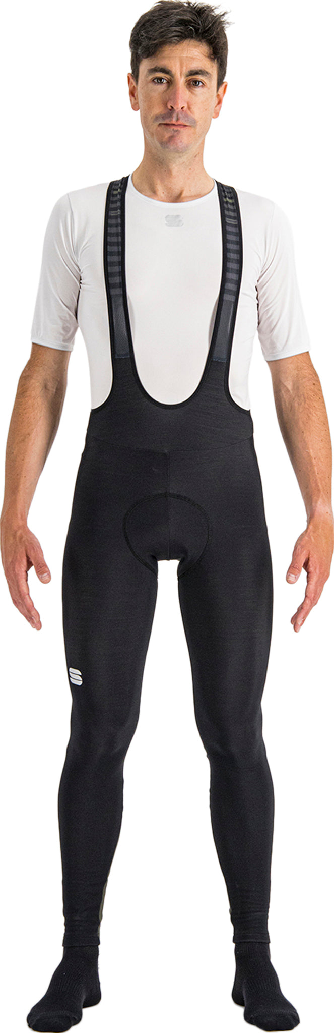 Features • Bibtight in warm stretch fabric • Mesh bib straps with graphic • Panel on calf with reflective elements • Flat-lock stitching • BodyFit Pro seat pad