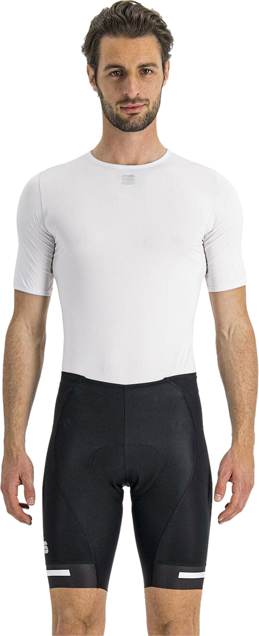 • New construction with raw-cut fabric on inner part of leg to eliminate seams in areas that could cause chafing • Short made with 200 g/m2 Lycra® • Outer part of leg finished with applied band, with grip dots to ensure stretch • Classic bib strap design with open position • New multi density, two layered Bodyfit Pro MD Seatpad