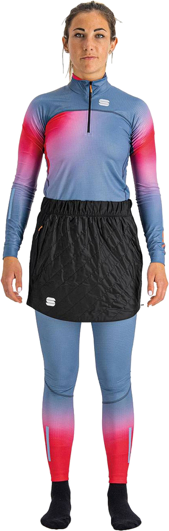 An update our Women's ski skirt that is flattering, easy to wear fit for extra warmth. Designed to be worn over tight adding insulation and an athletic feminine style. Perfect as an elegant warm up layer or just for additional warmth in the trails with a distinctive style.