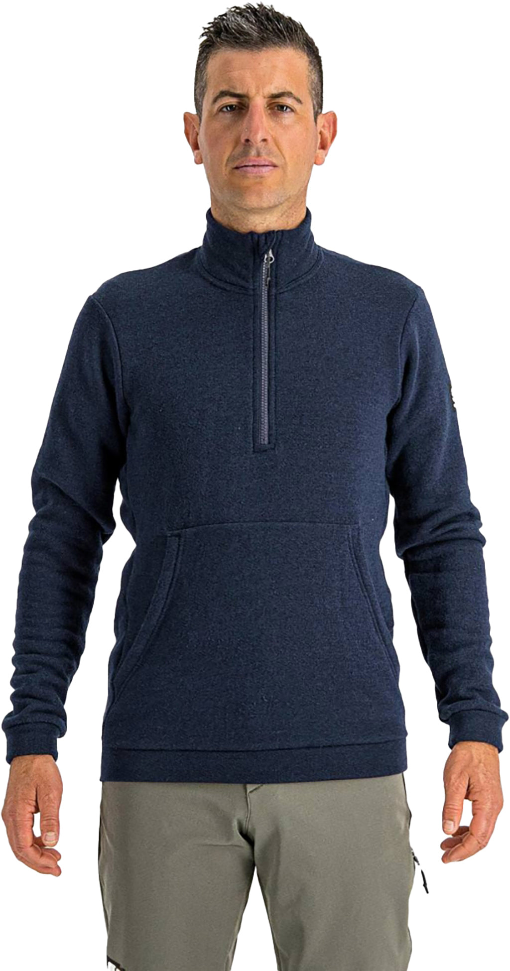 Features: • Recycled fabric in wool/polyester blend to combine comfort, warmth, and breathability • Kangaroo pockets on front • Half zip on front