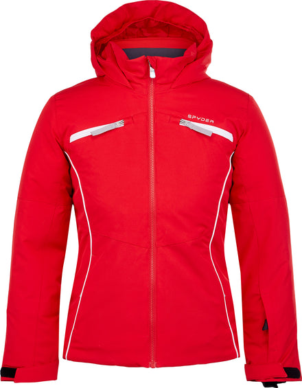 Give them the confidence to conquer the world in the Conquer Jacket. A simple, modern design gets elevated with a variety of engineered prints and eye catching color blocking. Constructed with durable, recycled Repreve™ polyester and PrimaLoft® Black ECO Insulation, the Conquer is high performing and versatile. Fully featured with a powder skirt, adjustable cuff tabs with interior stretch cuffs, helmet compatible hood and zippered hand, chest, data and internal pockets for long days on the mountain.
