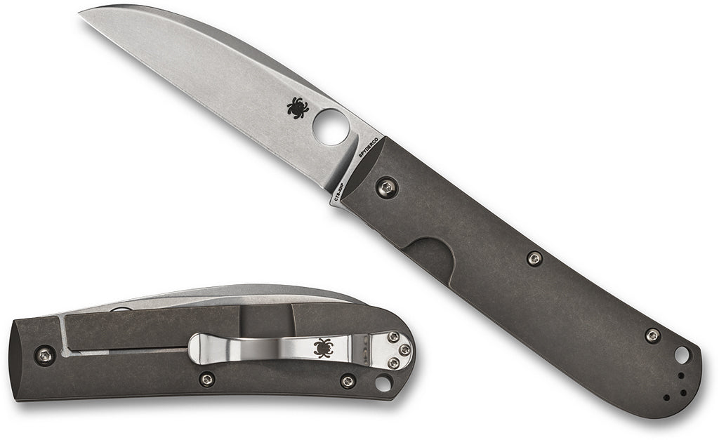 The SwayBack’s hollow-ground Wharncliffe blade is crafted from CTS® XHP stainless steel and has a handsome stonewashed finish. It is housed in an open-backed handle constructed with solid titanium scales. Both scales are beautifully crowned for comfort and the reverse-side scale forms the foundation of a sturdy Reeve Integral Lock (R.I.L.) with a stainless steel interface.
