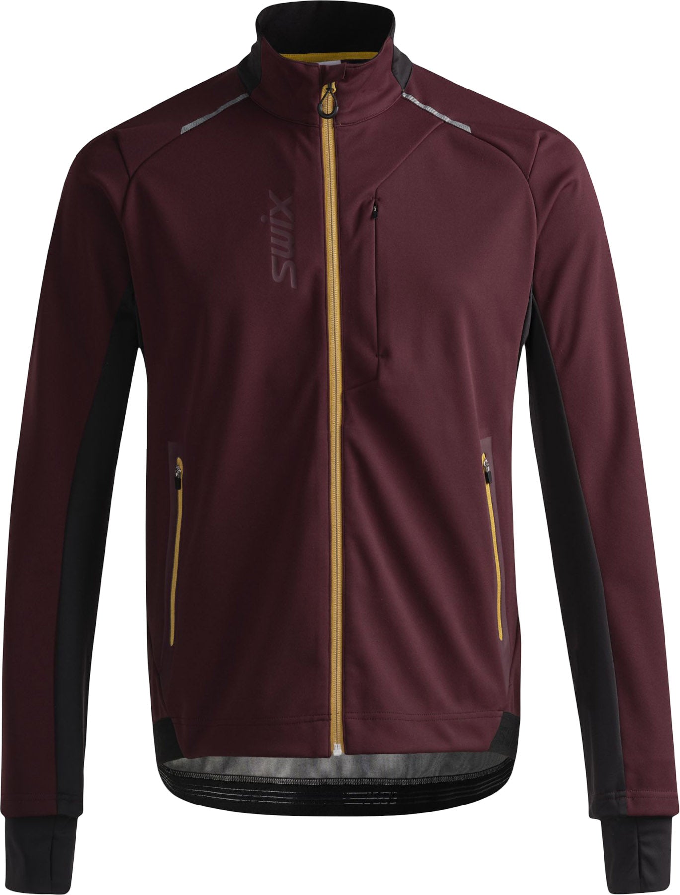 The Delda Light Men's Jacket is a streamlined, lighter version of the popular Delda Jacket, designed for athletes who prioritize performance, comfort, and style during cool-weather training. This lightweight jacket combines wind-resistant front panels with a ventilated back, making it ideal for intense activities like cross-country skiing and running. An eco-friendly water-repellent treatment keeps you dry, while the 4-way stretch fabric and articulated sleeves allow complete freedom of movement. Thoughtful features like microfleece wrist cuffs with thumbholes, a soft inner collar, and a chin guard with storm placket add comfort and protection. Zippered pockets, including a chest pocket, provide secure storage, and reflective details enhance visibility in low light. With its regular fit and branded elastic at the hem, this jacket is built to support your best performance in style.