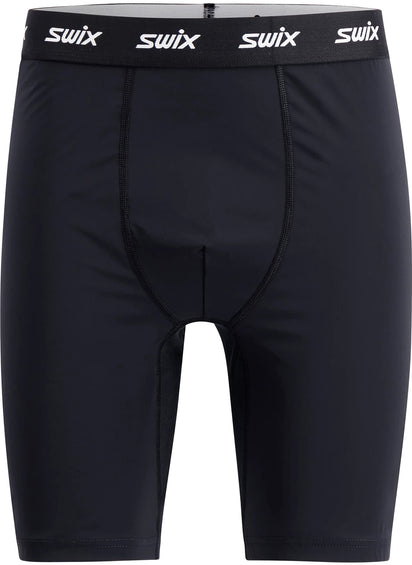 The Swix RaceX Classic Wind Boxers for men are the perfect hybrid baselayer for cross activity. Highly recommended for windy and colder days, it can be worn all year long. Made with a wind-resistant front thigh outerlayer that also offers a moisture-wicking function to prevent chilling down at higher speeds. The crotch area features a gusset for optimal movement. These boxer shorts' main fabric is highly stretchable and quick drying, offering optimal freedom of movement and great comfort. The main material is made with Repreve® Our Ocean Polyester recycled fibre made from bottles that are collected within 50 kilometres of coastlines in countries or areas that lack formal waste or recycling systems. A wide soft elastic waistband nicely and comfortably holds the boxers in place. Made for athletes, worn by everyone.