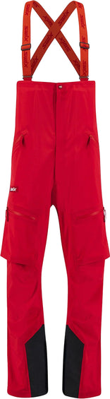 Surmount shell bib pants is made for the active alpine ski tourer. The main fabric is wind, waterproof and are highly breathable with a smooth backer to give you an optimal comfort. This bib pants is fully taped and has a technical fit constructed for great mobility. The pants have a zip fly and detachable suspenders at front. At the back waist there is an elastic fabric for extra comfort and breathability. There are four zippered pockets to store your necessities and at the side seam there is a full-length zipper opening that can also be used for ventilation. The bottom hem leg has a reinforced fabric. Inner gaiter is made in a 4-way stretch material, velcro and snap button at opening with an elastic at bottom hem, perfect to fit a ski boot.