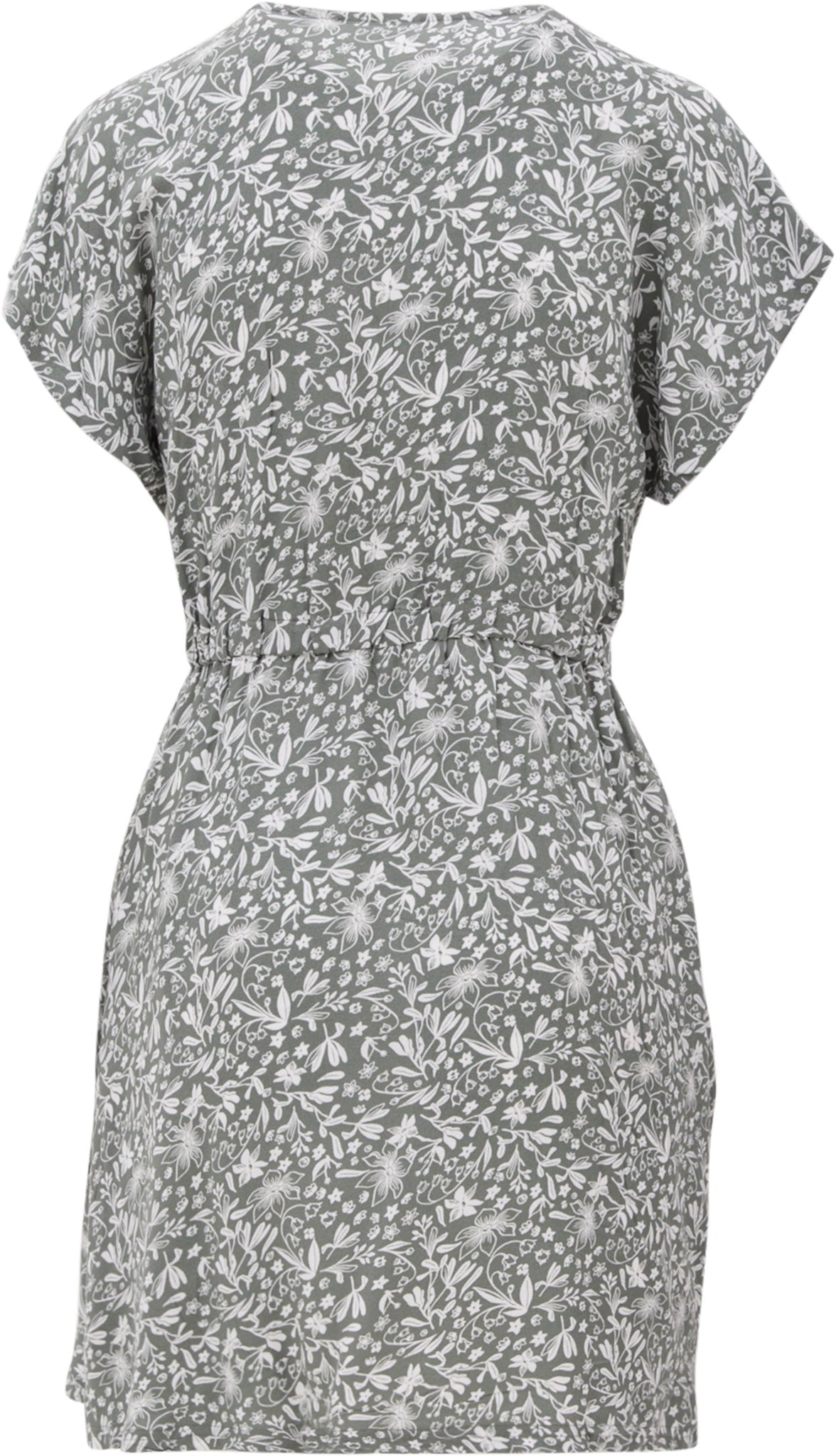 Features • Regular fit: This garment has a bit of additional room for added comfort • Knee Length • Sustainable Packaging • Sustainable Trim • Made from recycled materials • Corozo button • Low 2-way stretch woven fabric • V-neck • Cap sleeves • Crossover wrap front with chest button • Elasticized waist • On-seam hand pockets • Designed in Canada, ethically made in Indonesia
