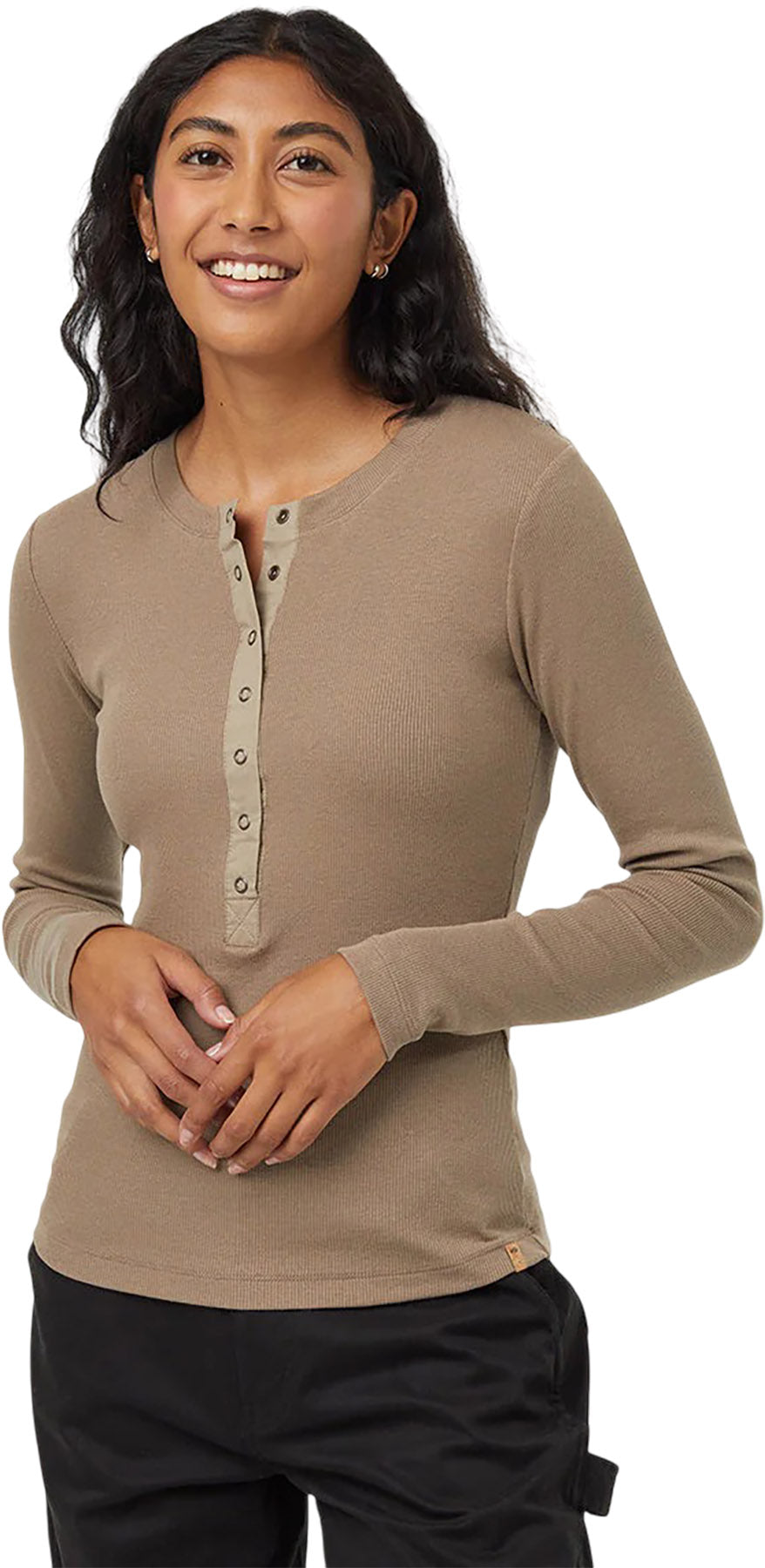 Pair a wide scoop neck with front snap buttons and Organic Cotton Modal Rib material, and what do you get? A timeless, layerable longsleeve that works as well up the mountain as it does out on the town.