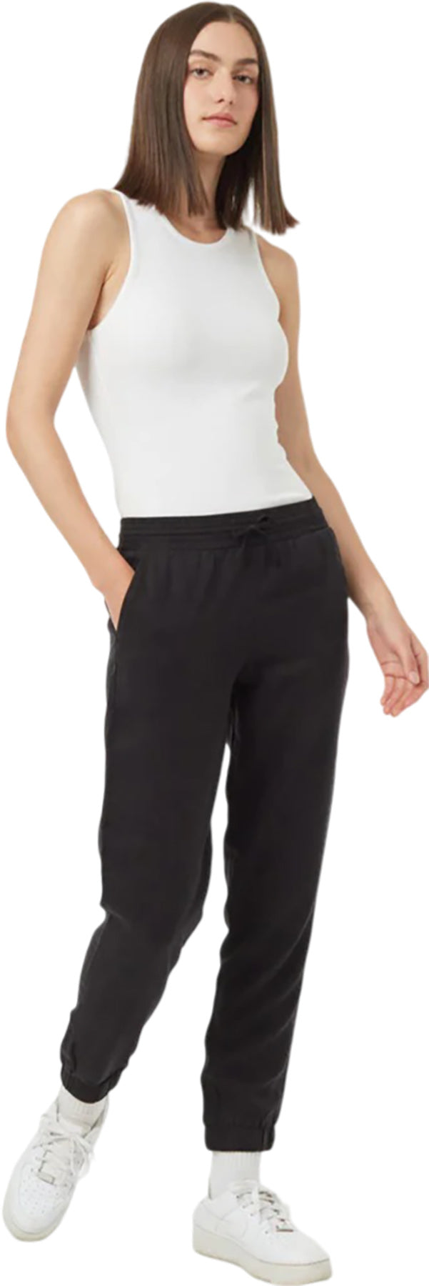Features • Relaxed fit: This garment fits looser on the body, for a more relaxed feel and look • Full Length • Mid-Rise • Width: Tapered • Garment dyed Tencel™ Lyocell • No stretch woven fabric • Adjustable: This item includes drawcords, belts, straps or other features that can be adjusted for fit or style • Elasticized waistband with drawcord • Elasticized jogger cuffs • Front hand pockets • Faux back welt pocket • Designed in Canada, ethically made in Indonesia