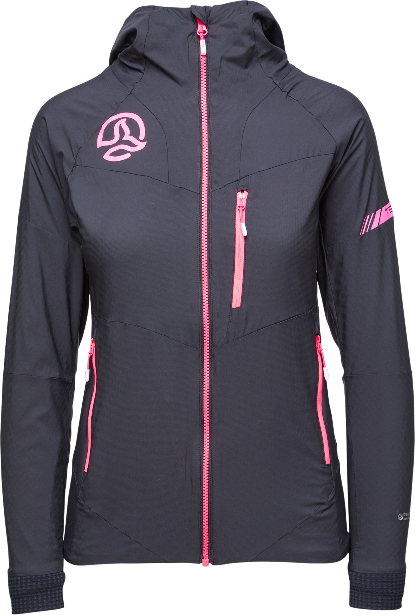 ► Pertex® Quantum Air is engineered with increased air permeability to provide a balance between wind resistance and breathability. The more openly woven structure of Quantum Air fabrics allows airflow through the fabric, which helps to regulate your body heat and keep you comfortable for longer. This balance of air permeability and wind resistance means Pertex® Quantum Air fabrics are perfectly suited to intense mountain pursuits. A durable water repellent (DWR) finish sheds light rain and snow to provide additional weather protection. Higher air permeability, increased breathability and weather protection for intense activity.