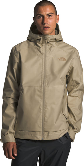 The Men’s MILLERTON Jacket by The North Face is made for hiking in the rain in warm weather. It’s seam-sealed, lined and keeps wind and water out. The hood has an adjustable shock cord. An inner draft flap under the front water-resistant zip keeps out drafts. Adjustable Velcro cuffs and a hem cinch cord keep elements on the outside.