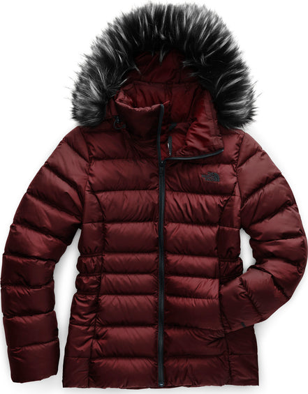 The women’s GOTHAM II is a stylish hip-length jacket by The North Face crafted for sunny winter outings. It’s padded with two types of insulation. RDS Certified 550-fill goose down lines the core and extremities. Hydrophobic 160g Heatseeker insulation warms critical areas like the shoulders, preventing soakage. A synthetic outer fabric with a durable water-repellent finish sheds light precipitation. The adjustable hood features a removable faux-fur ruff that adds a touch of urban style and protection from falling snow. Elastic shaping thread through the waist contours for a distinctly feminine shape. A secure-zip internal media pocket provides storage for your phone.