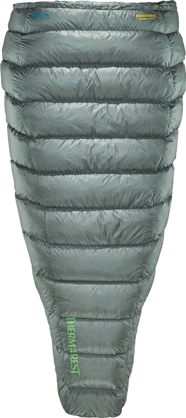 For the lightest possible pack, we crafted the Vesper 45F/7C to deliver the essential warmth needed for mild-weathered pursuits. To keep it light, we used powerful 900 fill Nikwax Hydrophobic Down certified by the Responsible Down Standard. Designed with high-quality materials and Therm-a-Rest performance features like SynergyLink™ connectors, a snap neck closure, perimeter side baffles and an insulated footbox provide warmth and comfort in the backcountry. When compared to sleeping bags, the Vesper quilts save weight and pack smaller by utilizing the warmth of your insulated pad. Storage sack and compression stuff sack included.