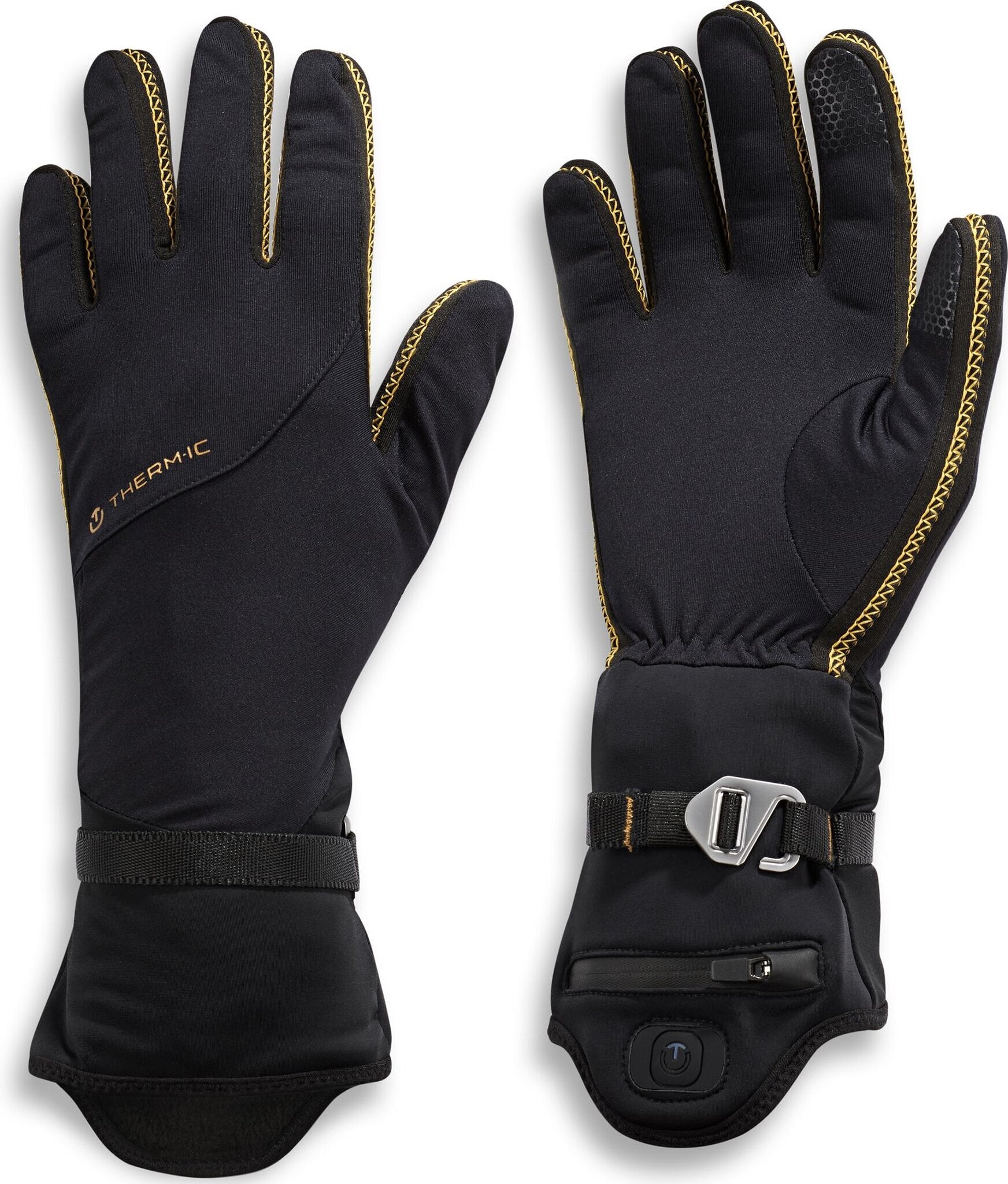 Bring heat into non-heating gloves with the Thin Ultra Heat liner. These heated undergloves can be worn under any other pair of gloves. The Thermo-regulating knitting technologies combined with recycled polyester provides perfect insulation and breathability for cold weather conditions. The S.E.T® heating line distributes heat evenly across fingertips, providing up to 7 and a half hours of warmth. The power button is positioned at the bottom of the cuff for easy access even when a glove is worn over it. Also three heating levels are available to suit your needs and the outdoor conditions. The close-fitting construction of the Thin Ultra Heat Liner ensures good hand agility and comfort. A strap on the cuff adjusts the glove to your wrist to prevent air from seeping in. The silicone print on index finger and thumb makes these gloves compatible with smartphones.
