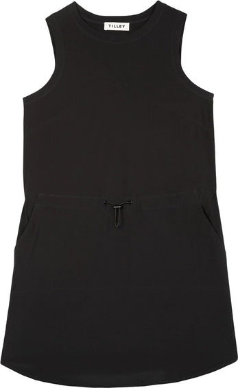 Experience the comfort of Tech Slk, featuring the look and feel of silk with added wrinkle resistance and four way stretch plus quick drying and moisture wicking ability.This dress also includes zippered pockets with secret card holder allowing you to securely carry essentials and hidden back vent to keep cool when the weather gets warm.