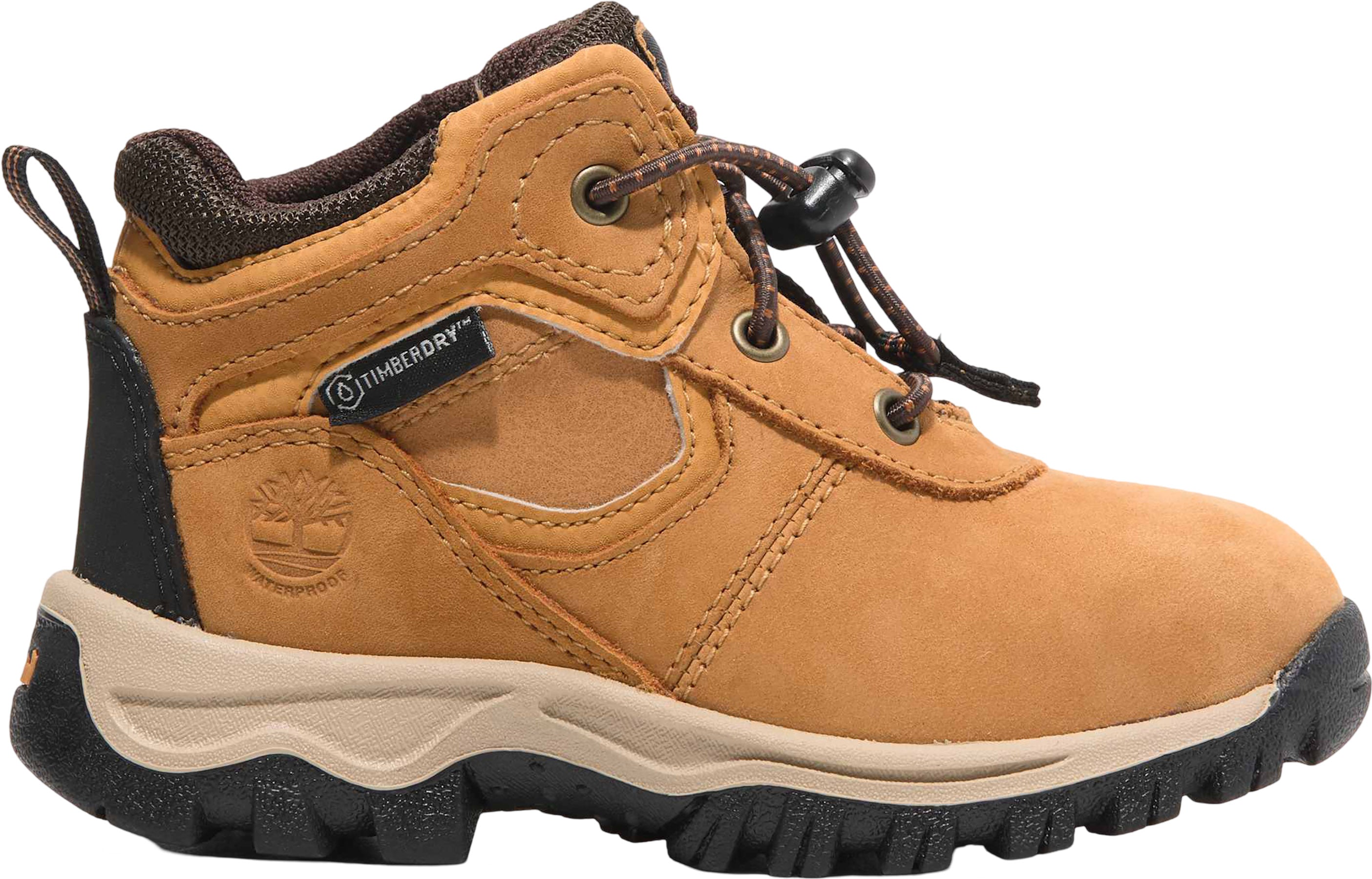 Features • Premium Timberland® leather upper • Lace closure on Junior and Youth sizes • Bungee closure on Toddler sizes • Fully gusseted tongue • Does it Fit? sockliner • OrthoLite® footbed • Compression-molded EVA midsole • TimberDry™ waterproof membrane • Rubber lug outsole • ReBotl™ fabric lining containing at least 50% recycled plastic • OrthoLite® Insoles • Waterproof Footwear