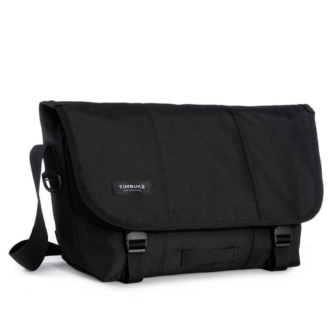 Our Classic Messenger Bag. Designed in San Francisco over 25 years ago. The shoulder strap features a curved airmesh strap pad for increased comfort, fine webbing, and Timbuk2's Double-Loop CAM buckle that adjusts quickly and eliminates dangling straps. A low profile grab handle makes the messenger easy to grab and go and SR buckles are partially concealed behind the messenger flap for a refined but secure closure. Inside, the waterproof TPU liner and corner wings keep water out, and the internal water bottle pocket keeps water in. Distributed internal pockets and organization balances the weight of your carry. It's a classic through some modern evolution, and its ready to be worn for whatever your carry needs.