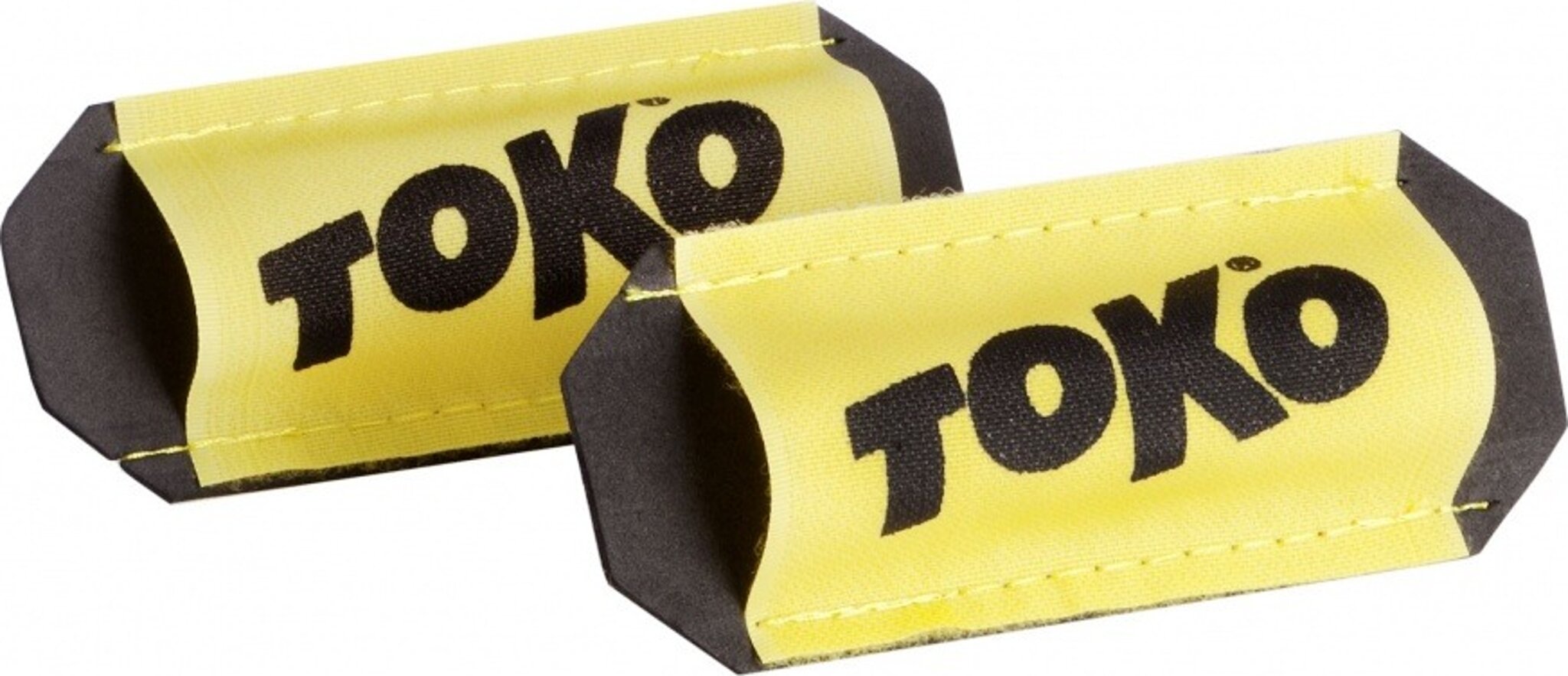 Sleeve style ski holder with base protection for keeping together cross-country skis. In 24-piece display.