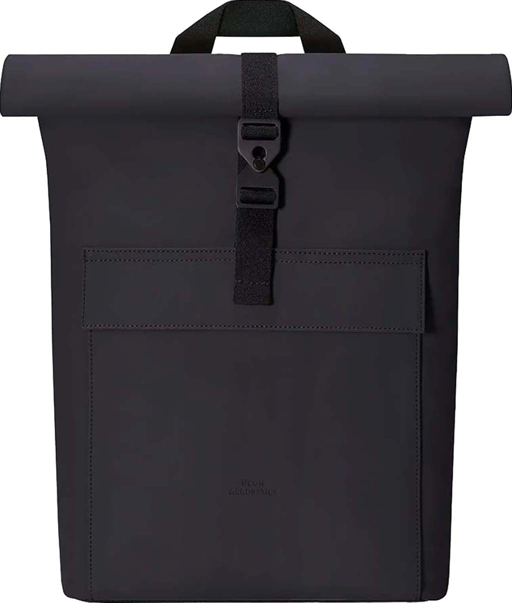 Features • The fluorocarbon-free PU outer coating makes the material waterproof and gives the product a modern and contemporary aesthetic • Closes as a roll-top or folded with metal buckle and hidden zipper • Can be folded up for maximum volume • Zipped fast access to the main compartment • High quality neoprene laptop compartment (up to 16“) with two additional mesh pockets for phone and wallet • Reinforced back with padding for more comfort • Padded and adjustable shoulder straps for more comfort • Padded bottom part for stability • Embossed 'Ucon Acrobatics‘ label on the front side • Shell material: Soft and durable surface from polyurethane (PU) with a backside from polyester (PET), PVC & PFC-free • Dimensions rolled out: 22 x 11 x 4 in • Dimensions rolled in: 16.5 x 11 x 4 in • Capacity rolled out: 16 l • Capacity rolled in: 12 l • Weight: 2 lb