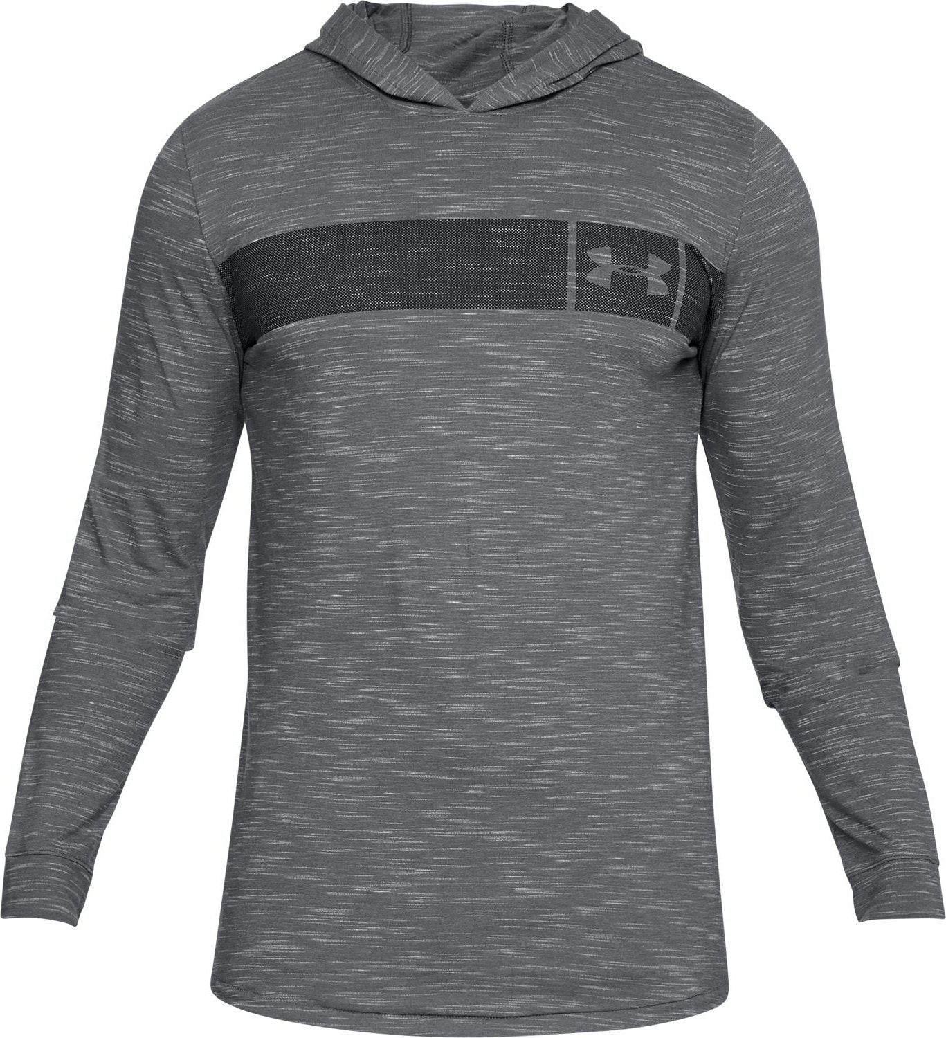 The men’s UA Sportstyle Core Hoodie is fitted for athletic pursuits. This comfortable core-warming sweatshirt is made from a cotton and polyester fabric blend. Cotton is immensely stretchy and soft, while polyester content wicks away your sweat and helps this hoodie dry quickly. It’s 2-tone heathered texture wears comfortably without layers underneath. The hood is light and comfortable, while the shaped lower hem pairs well with gym shorts.