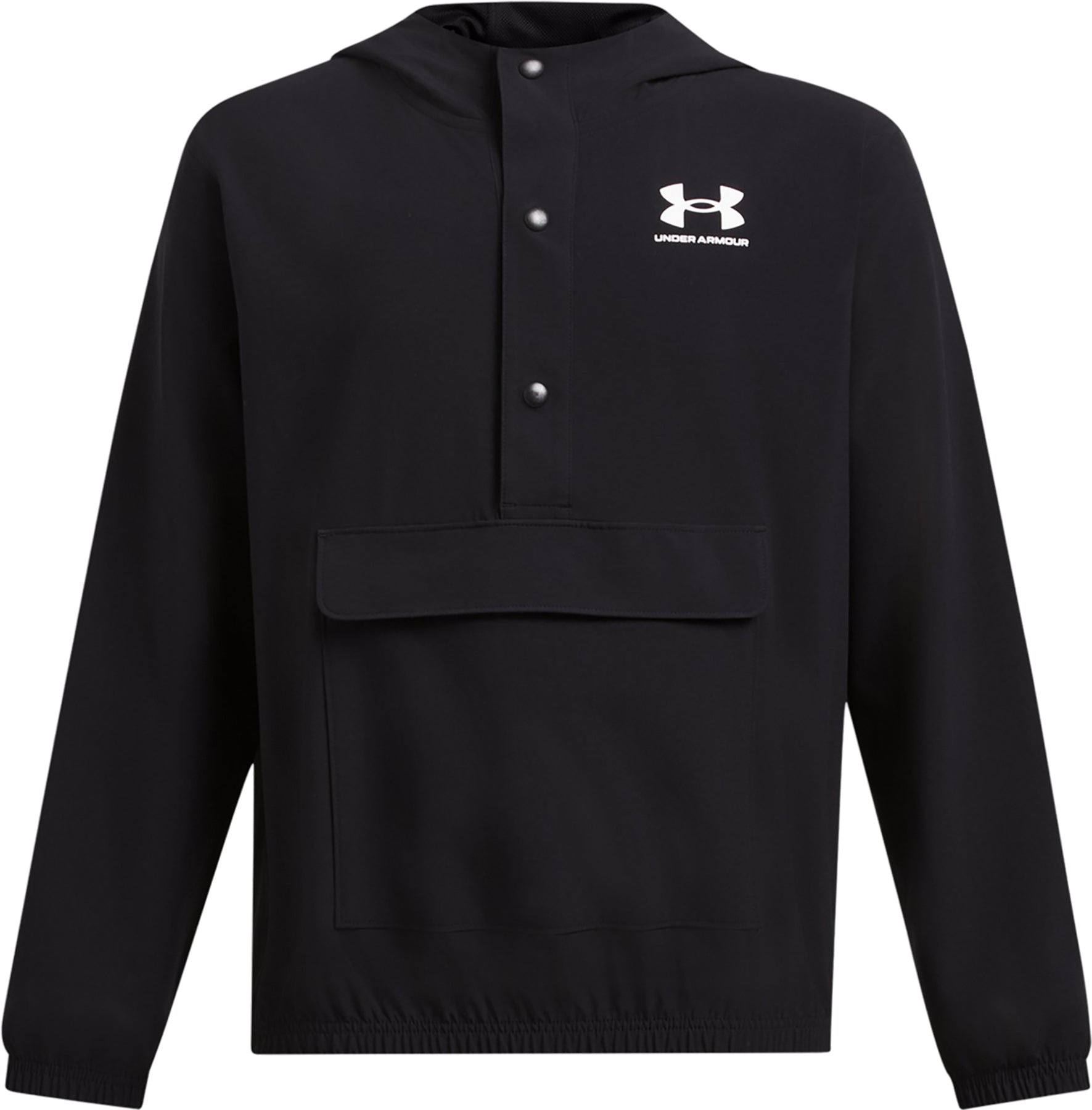 Features • Loose fit: Fuller cut for complete comfort • UA Storm technology repels water without sacrificing breathability • Lightweight stretch woven fabric delivers superior comfort & durability • 4-way stretch material moves in all directions • Front snap placket for easy layering & on/off • Front flap-closure pocket • Encased elastic cuffs & bottom hem for a secure fit • Uses a fluorine-free water repellent treatment • Main body fabric contains at least 80% recycled polyester, excluding trims & embellishments