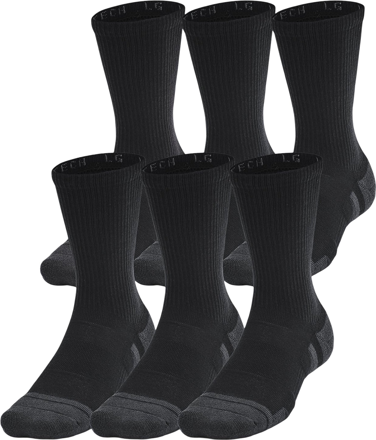 Features • Regular fit • Durable material wicks sweat & dries really fast • New Locked-In Fit design keeps sock securely on heel for an adjustment-free fit • Medium cushioning throughout foot for comfort & protection • Mesh panels on top of foot for added breathability • Built-in arch support helps reduce foot fatigue • 6 pairs of socks