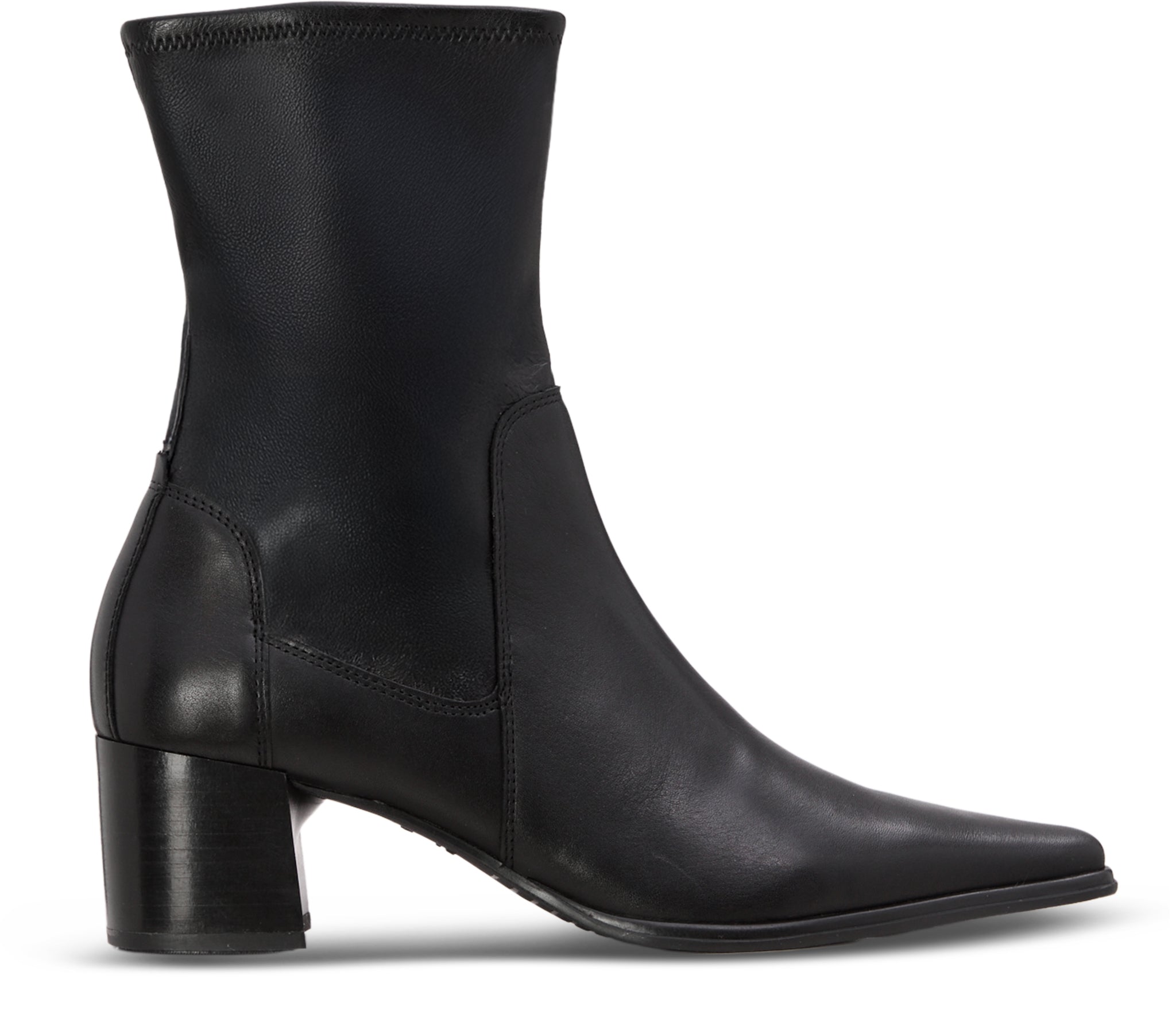 Giselle is a sophisticated pair of stretch boots to wear season after season. The style is crafted from black leather and features a stretchy shaft, pointed-toe shape, and zip-side fastening. The heels measure 57mm.