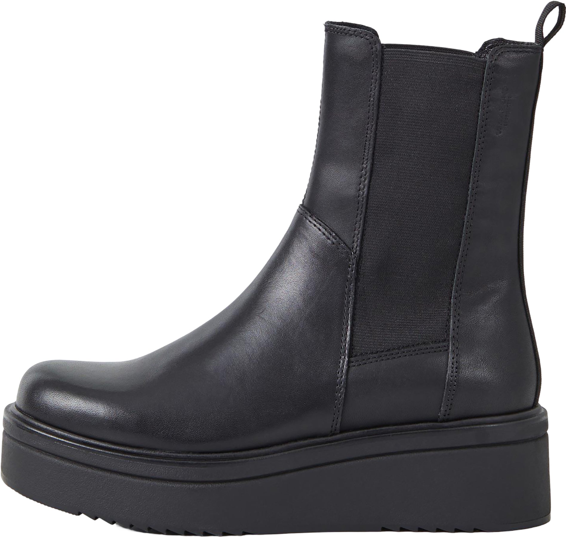 Meet Tara, the go-to statement boots. This modern take on the classic Chelsea boot is made from smooth black leather set on a chunky, yet light, flatform sole measuring 55mm. Details include elasticated inserts and pull tabs back for easy wear and removal.