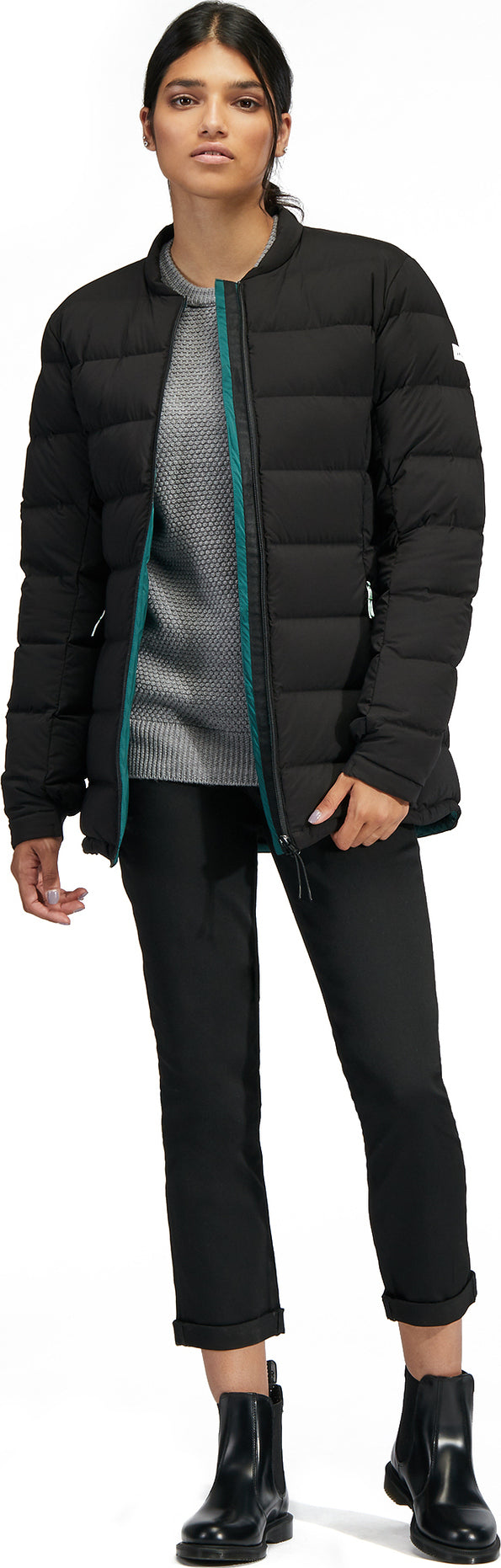 Light 800 down fill power insulator jacket. Tailored women’s slim fit with a lengthened profile. Stretch woven exterior fabric for enhanced mobility. Designed for clear-weather pursuits during colder months in Canadian cities.