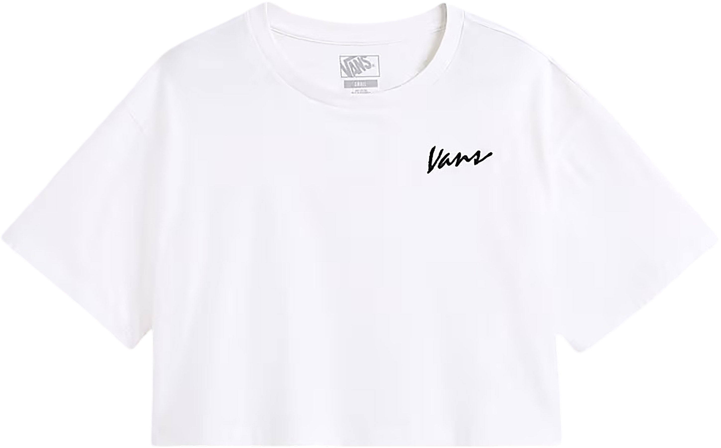 With this cropped design we revisit the classic Vans tee for an edgier, more modern silhouette. The Classic Script T-Shirt features a crew neck, short sleeves and an embroidered, handwritten Vans logo on the left chest for subtle branding.