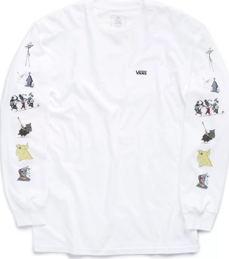 Step into imagination with the characters and the creative spirit of Disney Tim Burton's THE NIGHTMARE BEFORE CHRISTMAS in this new Off The Wall collection. Celebrating this iconic film, the Disney x Vans Kids Long Sleeve T-Shirt is a 100% combed ringspun cotton long sleeve t-shirt featuring the characters of Halloween Town on the sleeves. Fit type: custom.