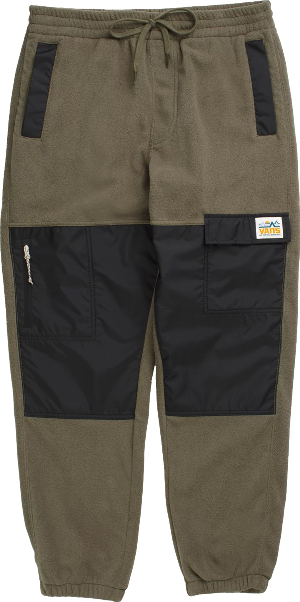 The Vans Relaxed Fleece Pant is a 100% polyester polar fleece sweatpant with contrasting nylon fabric at the hip pockets and knee panels.
