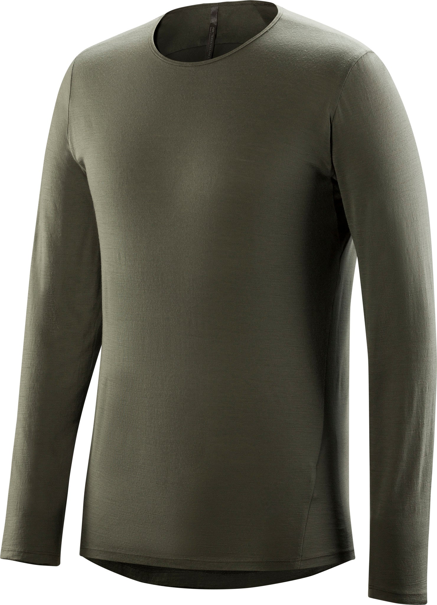 The ultra-comfortable men's FRAME LS Shirt by Veilance is the perfect addition to your minimalist wardrobe. The crew neck long sleeve t-shirt is made from Mapp Superfine Merino Jersey, a soft merino that provides excellent next to skin comfort. In addition to being lightweight, merino is moisture-wicking, breathable and temperature regulating. The gusseted underarms provided added mobility and range of motion while the internal shoulder contains facing to keep the stable. This long sleeve combines performance design with urban style.